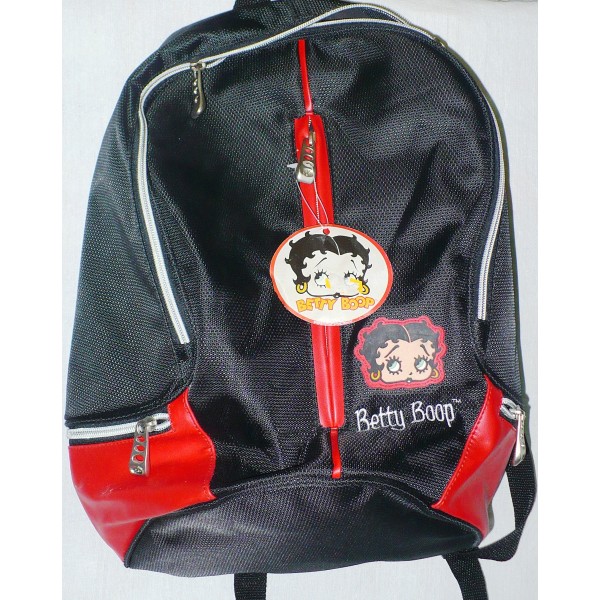 ZAINO AMERICANO BETTY BOOP NON MOLTO GRANDE FATTO CON MATERIALE ANTIPIOGGIA COLORE ROSSO E NERO LE PARTI IN ROSSO SONO IN ECOPELLE