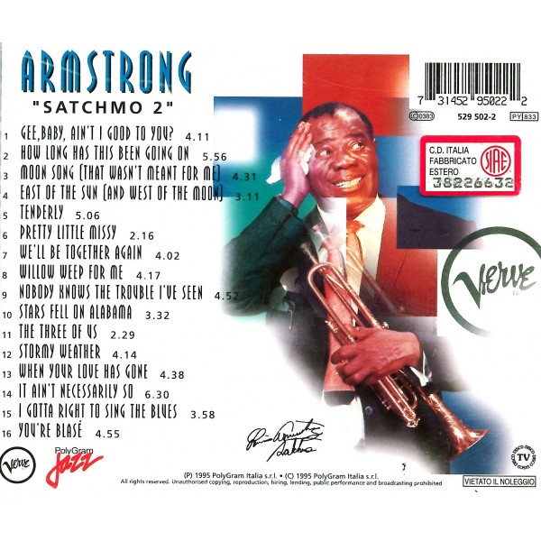 Satchmo 2 è un fantastico album pubblicato nel 1995 del mitico Luis Armstrong. Non sigillato album nuovo perfetto