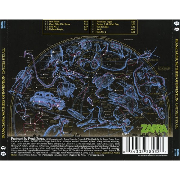 One size fits all è un capolavoro del grandissimo Frank Zappa pubblicato nel 2012. sigillato