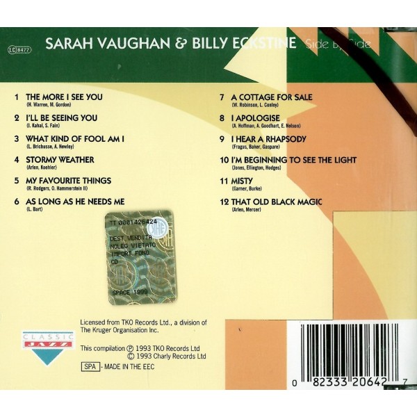 CD Sarah Vaughan & Billy Eckstine- slide by slide 082333206427