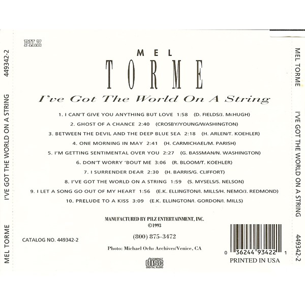 CD Mel Torme- i've got the world on a string 036244934221