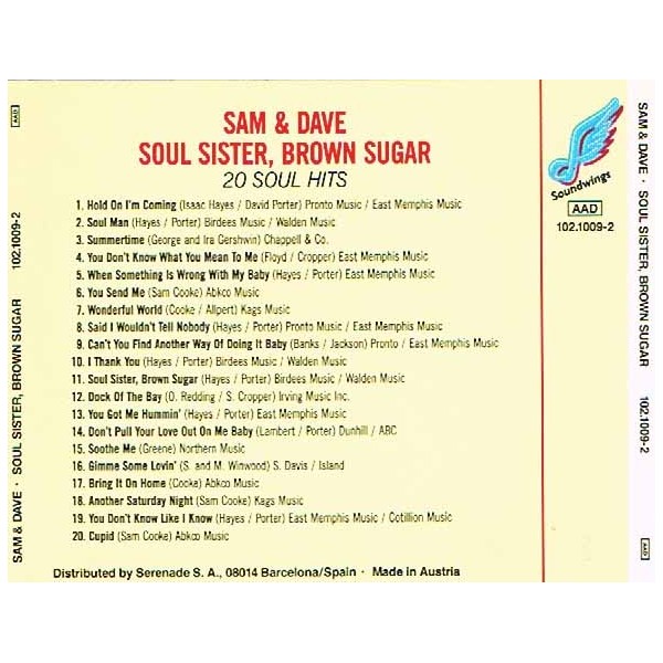 CD Sam & Dave- soul sister, brown sugars 20 soul hit 159357492675