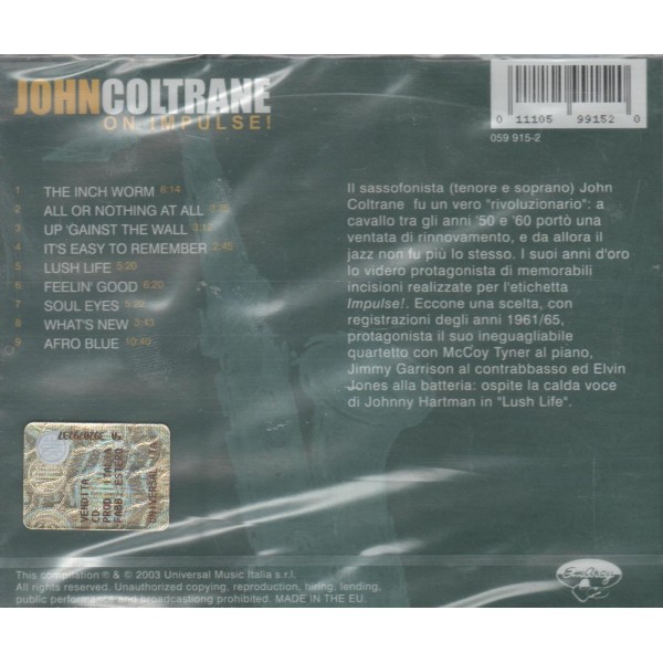 On impulse è un fantastico album pubblicaot nel 2003 del grandissimo john coltrane. Sigillato album nuovo perfetto