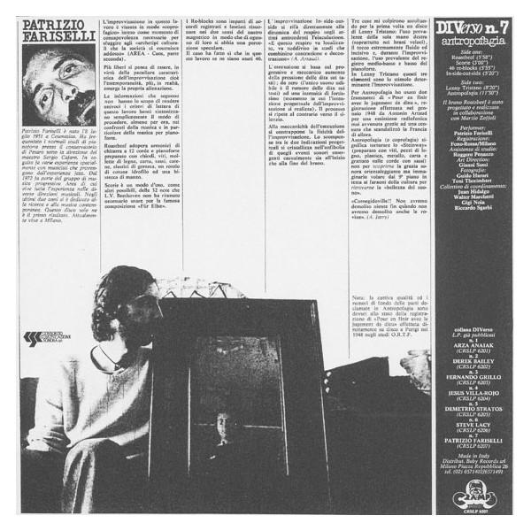 Antropofagia è un fantastico album pubblicato nel 2013 di Patrizio Fariselli.Sigillato