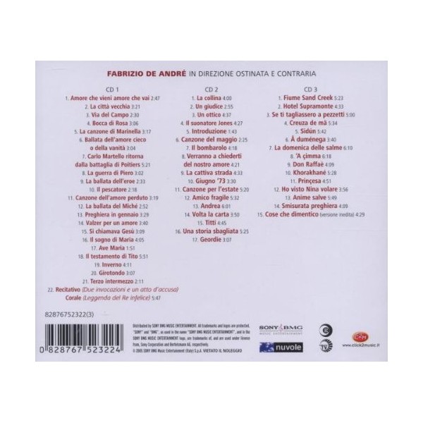 In direzione ostinata e contraria è un fantastico triplo album del grandissimo cantautore italiano Fabrizio De Andrè pubblicato nel 2005. Nuovo non Sigillato