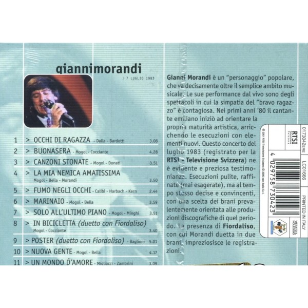 I concerti live @ RTSI Gianni Morandi è un grandissimo album live del concerto del grande Gianni Morandi in svizzera del 7 luglio 1983. Nuovo Sigillato