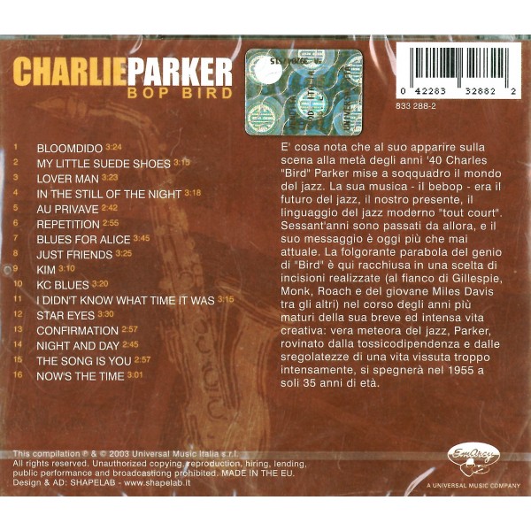 Bop bird un grandissimo album di Charles Parker pubblicato nel 2003. Imballo originale sigillato perfettamente