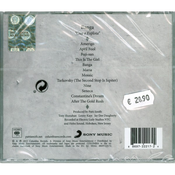 Banga è un grande album del mitico Patti smith pubblicato nel 2012. Imballo originale sigillato perfettamente