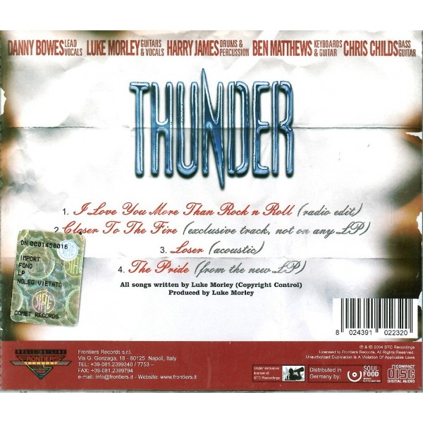 I love you more than rock n roll è un fantastico album di Thunder pubblicato nel 2004. Non sigillato nuovo perfetto