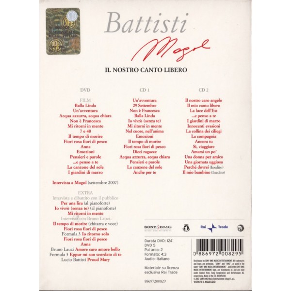 CD BATTISTI MOGOL IL NOSTRO CANTO LIBERO DVD + CD Combo Package DVD Size 886972008295