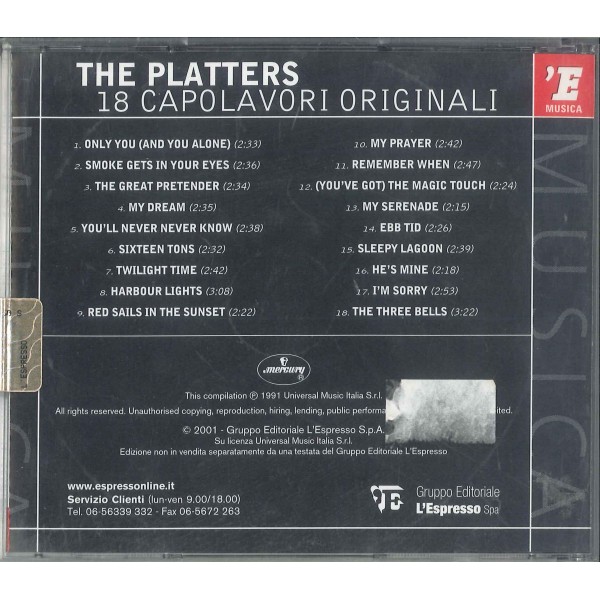 CD THE PLATTERS 18 CAPOLAVORI - NUOVO