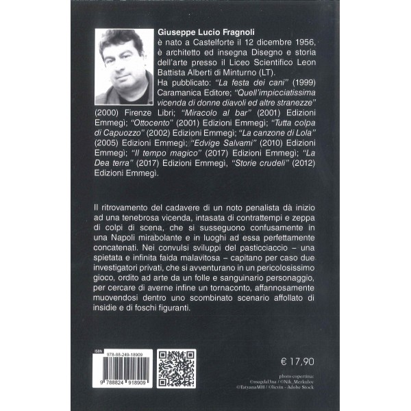 "Il ritrovamento del cadavere di un noto penalista dà inizio ad una tenebrosa vicenda, intasata di contrattempi e zeppa di colpi di scena, che si susseguono confusamente in una Napoli mirabolante e in luoghi ad essa perfettamente concatenati. Nei convulsi sviluppi del pasticciaccio − una spietata e infinita faida malavitosa − capitano per caso due investigatori privati, che si avventurano in un pericolosissimo gioco, ordito ad arte da un folle e sanguinario personaggio, per cercare di averne infine un tornaconto, affannosamente muovendosi dentro uno scombinato scenario affollato di insidie e di foschi figuranti.