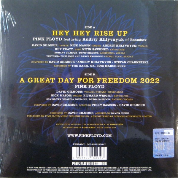 LP/45 giri PINK FLOYD - HEY HEY RISE UP (Feat. Andriy Khlyvnyuk Of Boombox) - LTD. EDITION 7'' PER UKRAINA NUOVO SIGILLATO