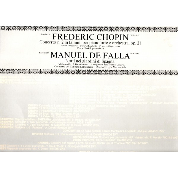 LP CHOPIN CONCERTO N.2 PER PIANOFORTE E ORCHESTRA / DE FALLA Notti nei giardini di Spagna